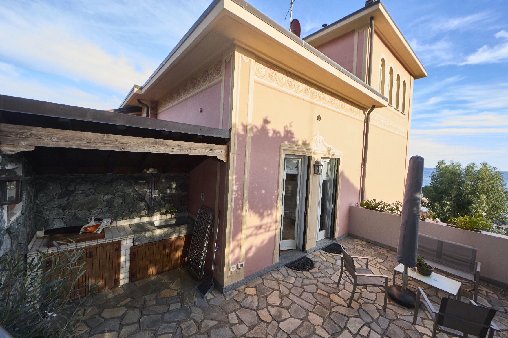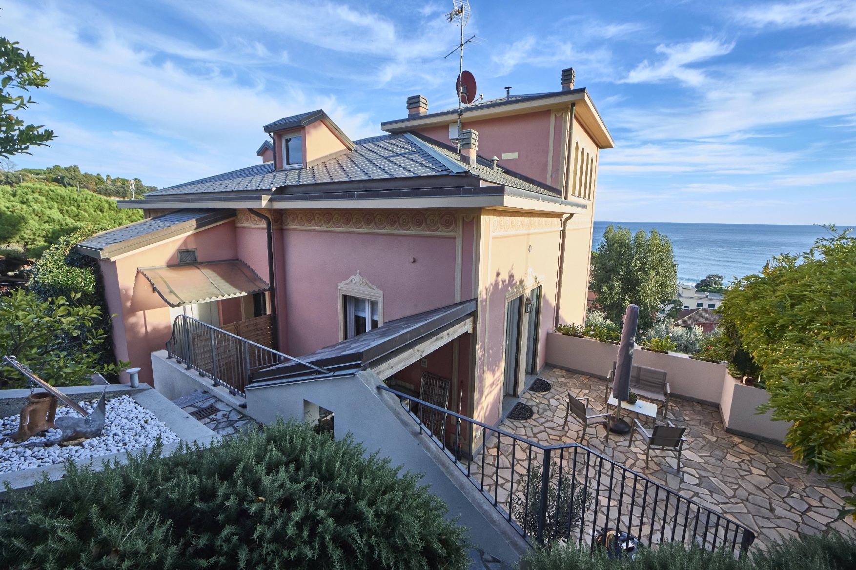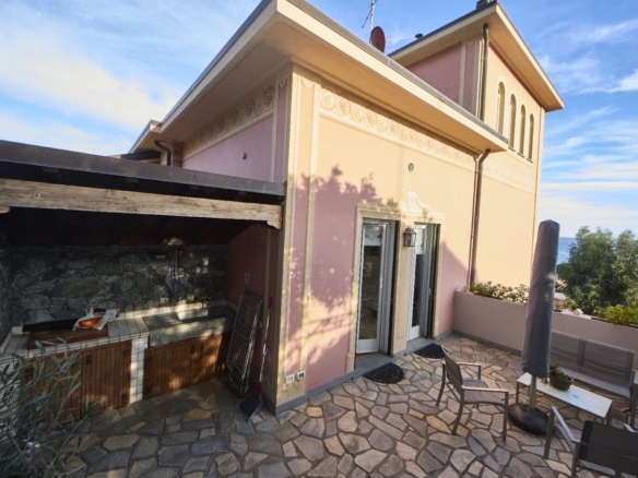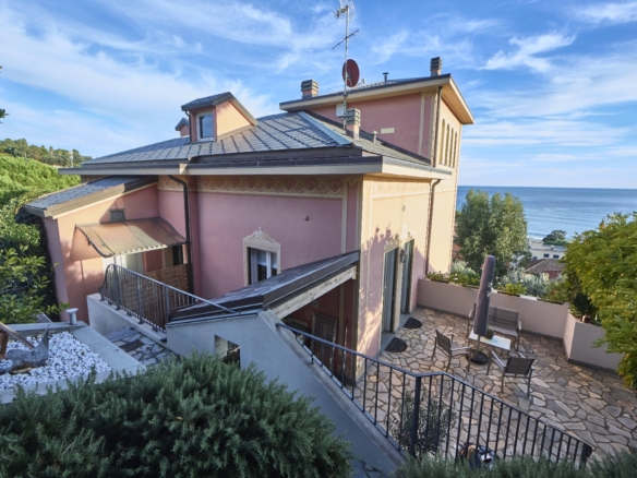 A Celle Ligure eletto tra i borghi più belli d’Italia, nella panoramica ed esclusiva Via Milano, proponiamo in vendita porzione di prestigiosa villa d’epoca così distribuita: ingresso indipendente su ampio salone con uscita su esterno panoramico attrezzato, cucina abitabile, wc; al piano superiore salottino con affascinante terrazzino vista mare, tre camere, wc, dispensa; in torretta camera da letto vista 360 gradi con ampio ed elegante servizio. Completano la proprietà una grande autorimessa-magazzino; un posto auto all’interno del parcheggio condominiale, un giardino con vista a prato inglese e una terrazza piastrellata per feste ed eventi. Proposta rara ed irripetibile in contesto unico.